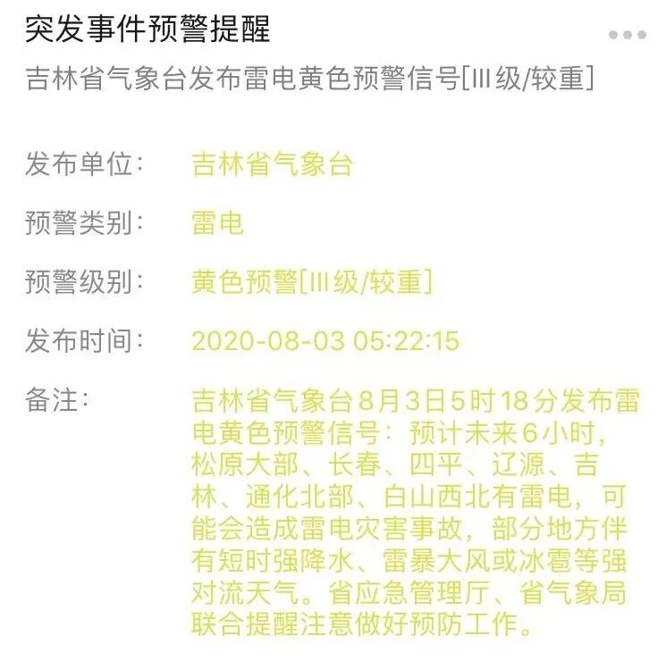 来源 |综合自中国天气网、吉林气象、吉林预警发布